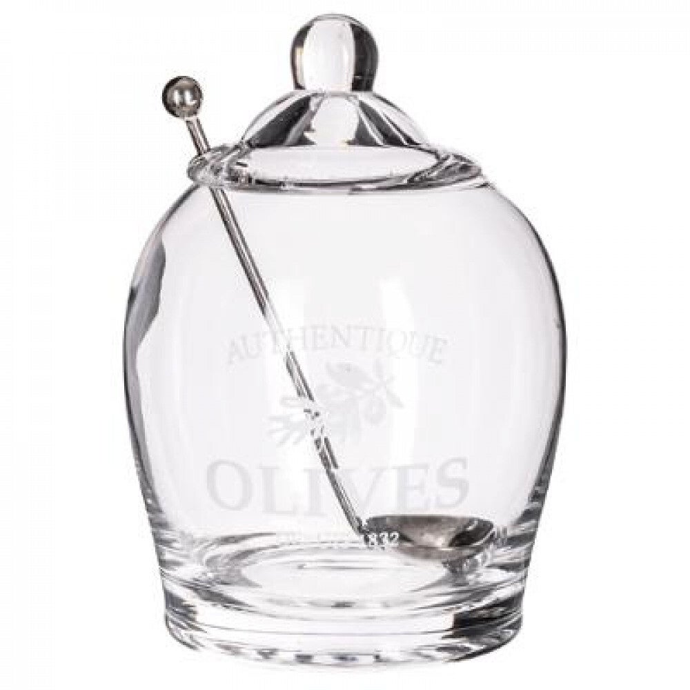 Deze elegante olijvenbokaal is perfect voor het bewaren en presenteren van olijven, tapas of andere lekkernijen. Met een inhoud van 54cl biedt de bokaal voldoende ruimte voor een smakelijke voorraad. Het transparante ontwerp zorgt ervoor dat je de inhoud gemakkelijk kunt zien, terwijl het stijlvolle uiterlijk een verfijnde touch toevoegt aan je eettafel of keuken.